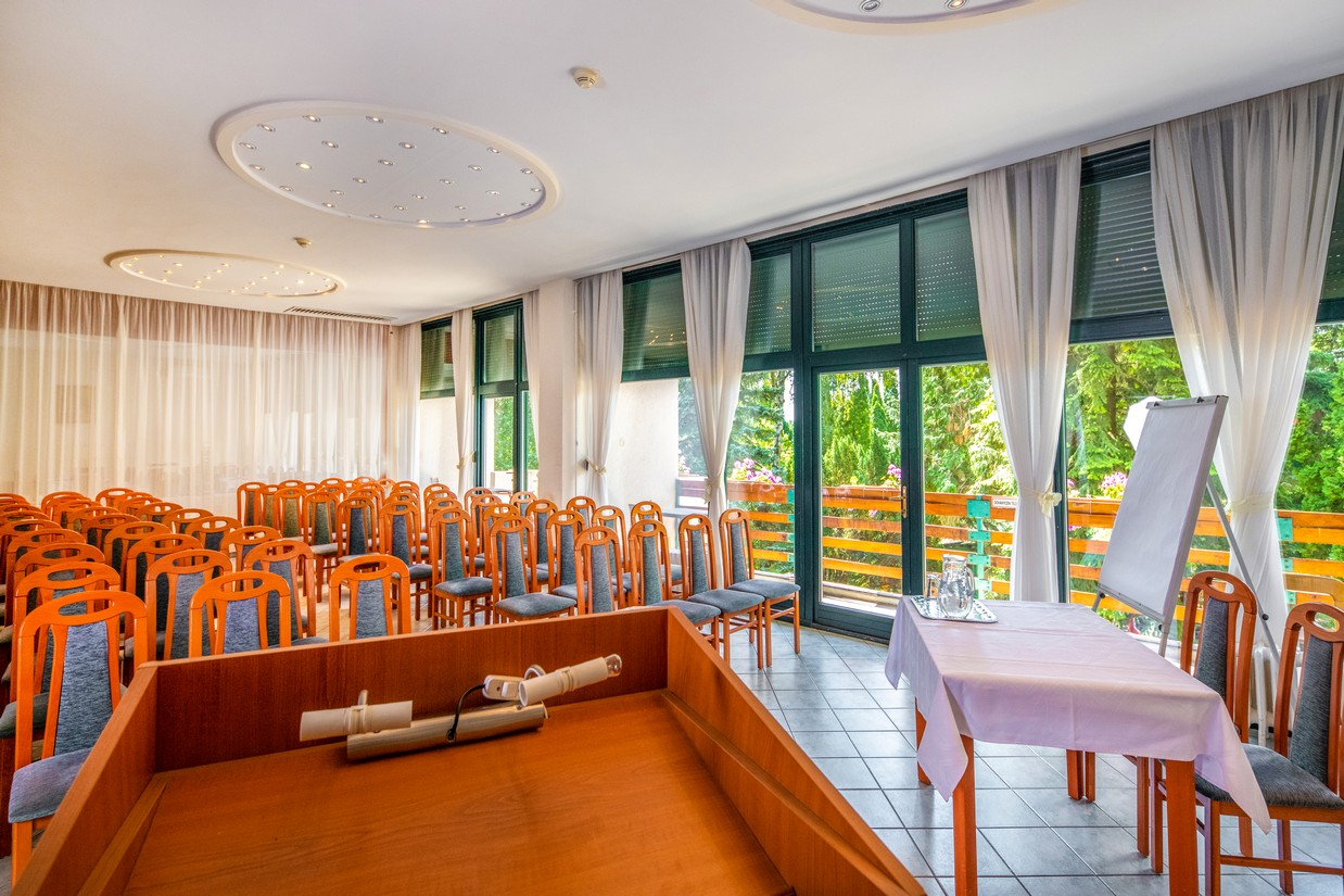 A Mátrafüred Hotel Akadémia rendezvényterme egyidejűleg 60 fő befogadására alkalmas, igény szerint összenyitható vagy elszeparálható.