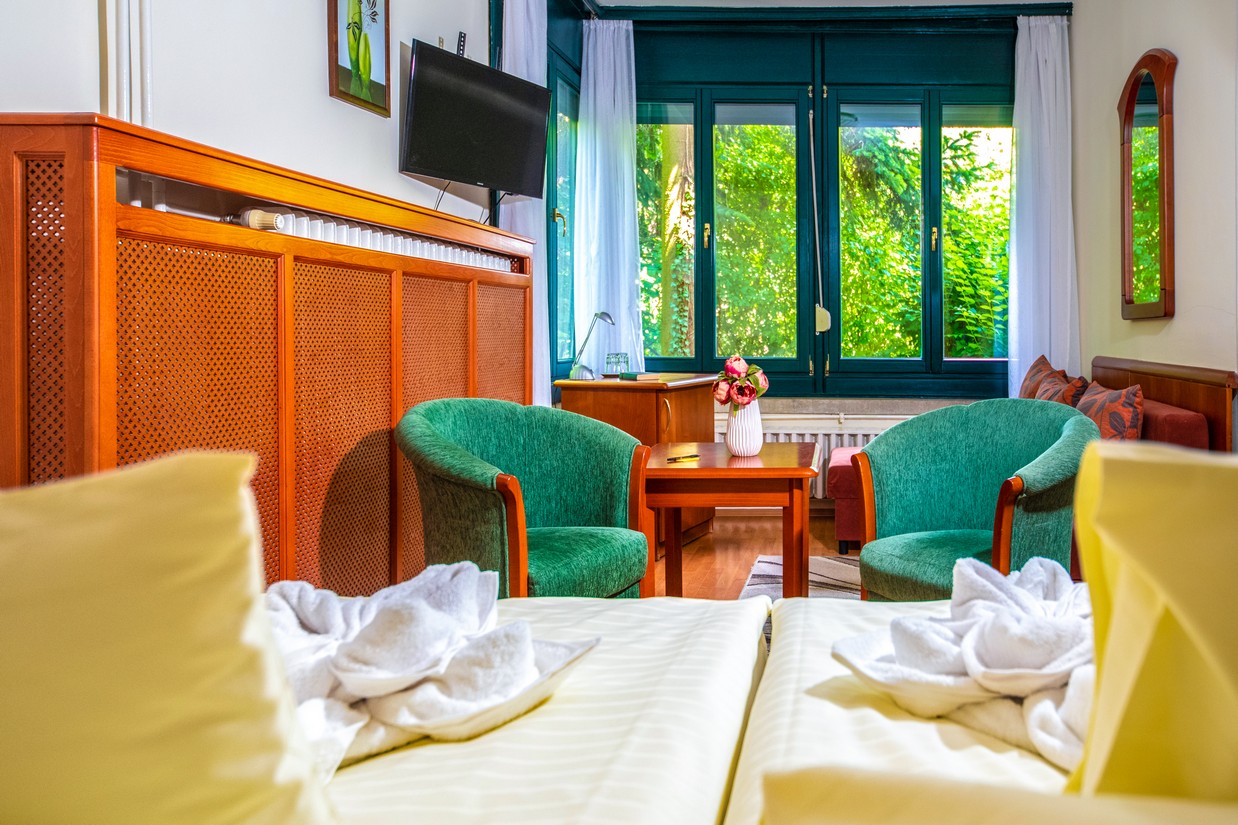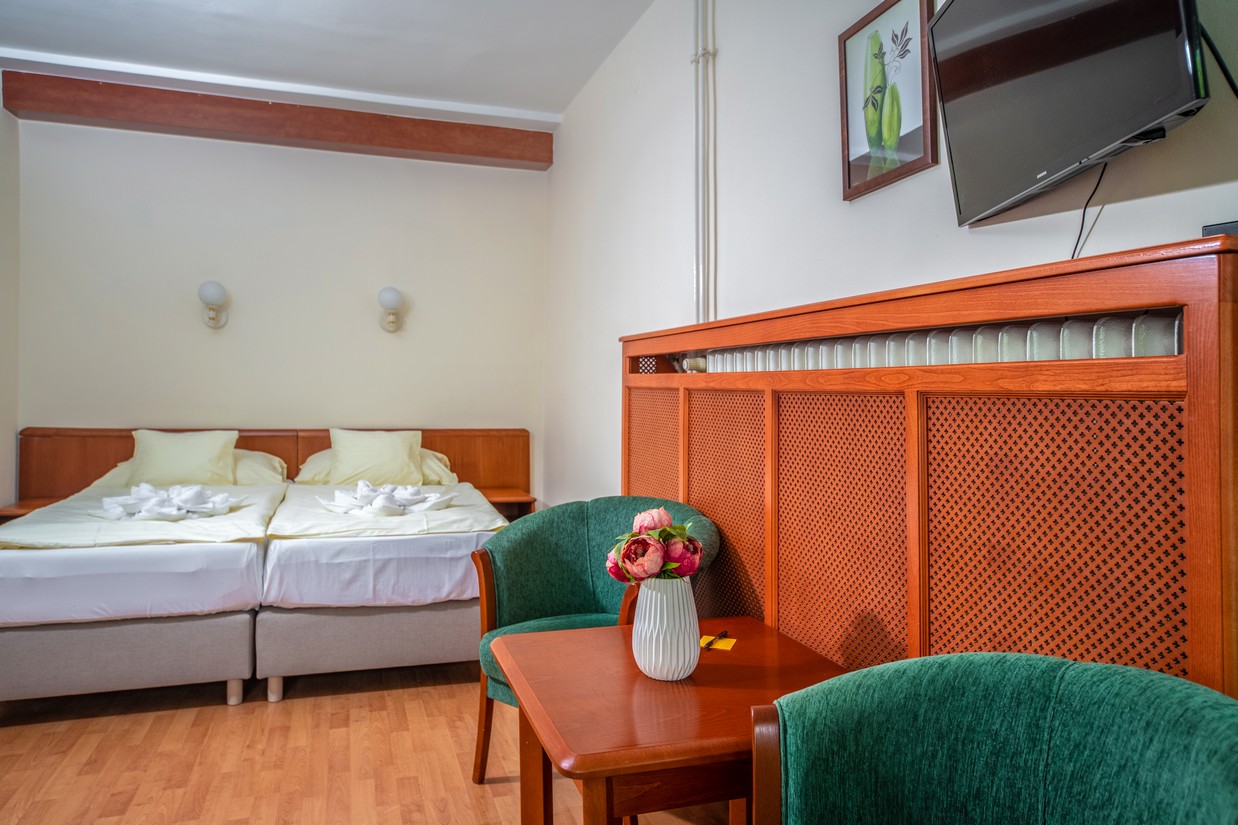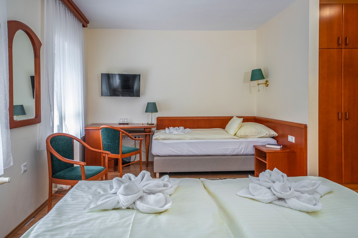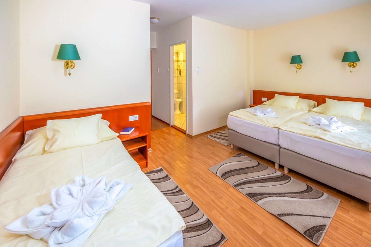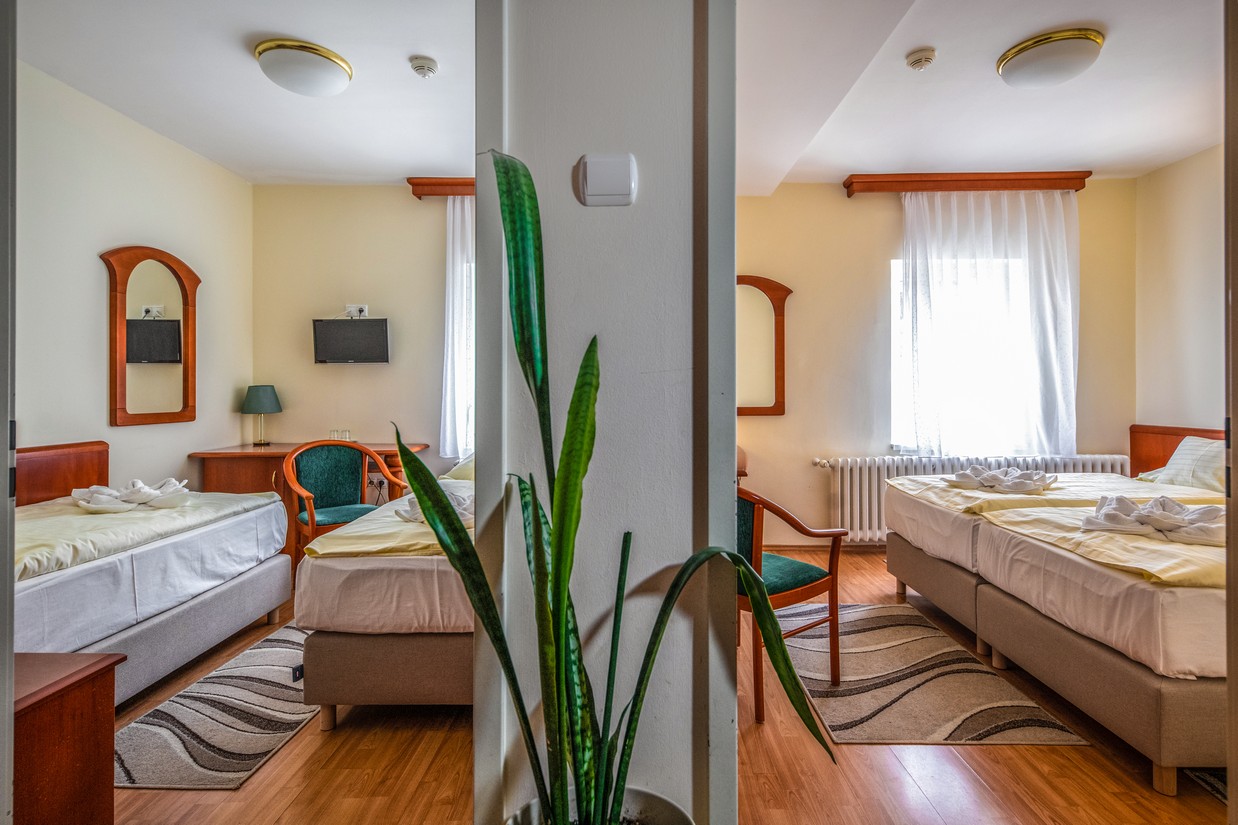 2 x 2 ágyas (kérés esetén összetolható) udvarra néző, családi szoba