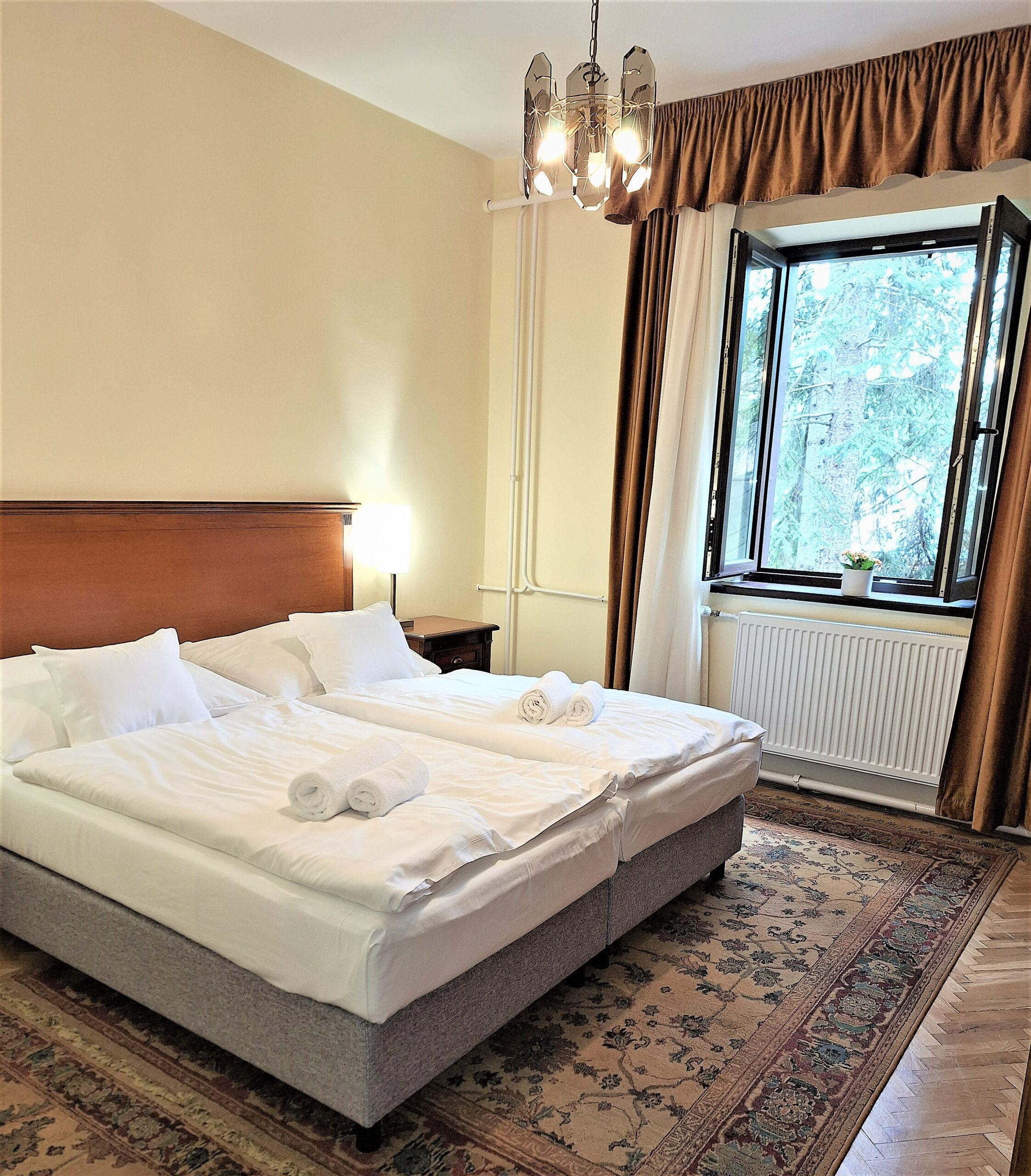2 külön ágyas (kérés esetén összetolható), fákra néző szoba