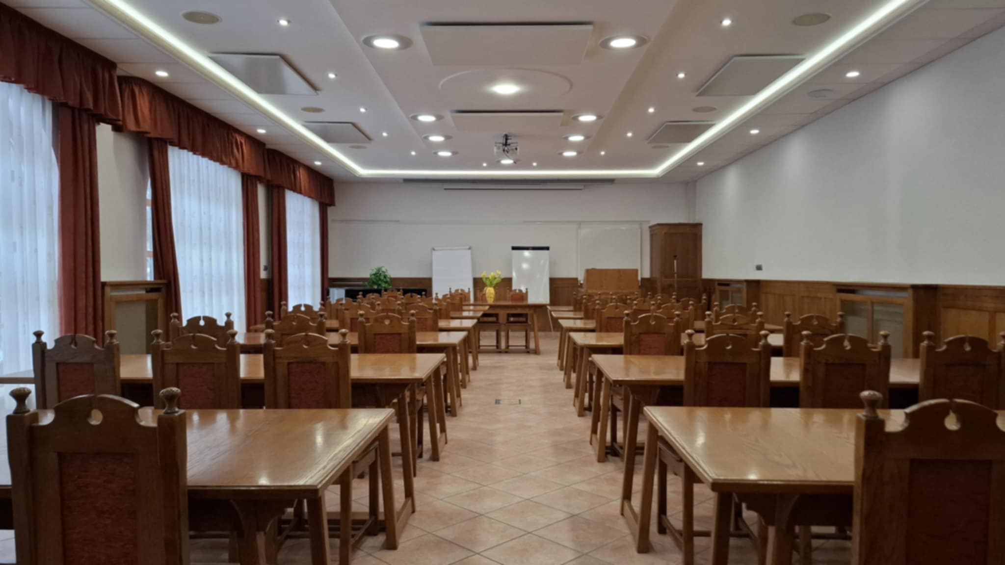 A konferenciaterem 65 fő befogadására alkalmas. A hang- és vizuáltechnikai eszközökkel (mikrofon, hangfalak, vetítővászon, flipchart, projektor) felszerelt, széksoros berendezésű terem ideális konferenciák, szimpóziumok, továbbképzések megtartására.